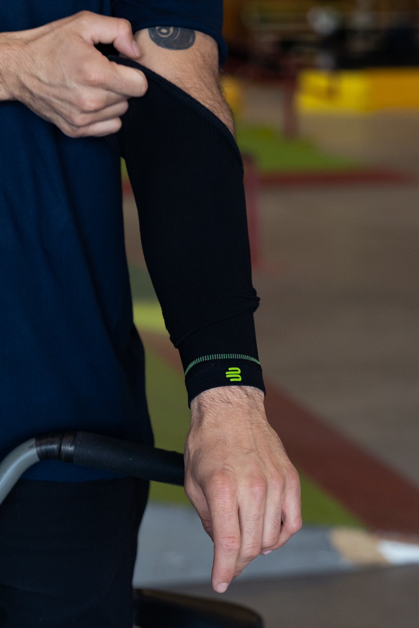 Bauerfeind's Compression products have been developed specifically for endurance sports, and help promote faster muscle regeneration during and after cycling. Noticeable pressure activates circulation. This promotes oxygen transport to muscles and improves the flow of blood back to the heart. Metabolic waste is thus better transported away, this keeps arms and legs from swelling intensely. Itβs not without reason that professional cyclists have been relying on compression products for years. Racing professionals wear compression products during training as well as during and after competition. Bauerfeind Sports Compression Sleeves support muscle recovery, so you can enjoy longer, more pleasurable rides to the fullest!