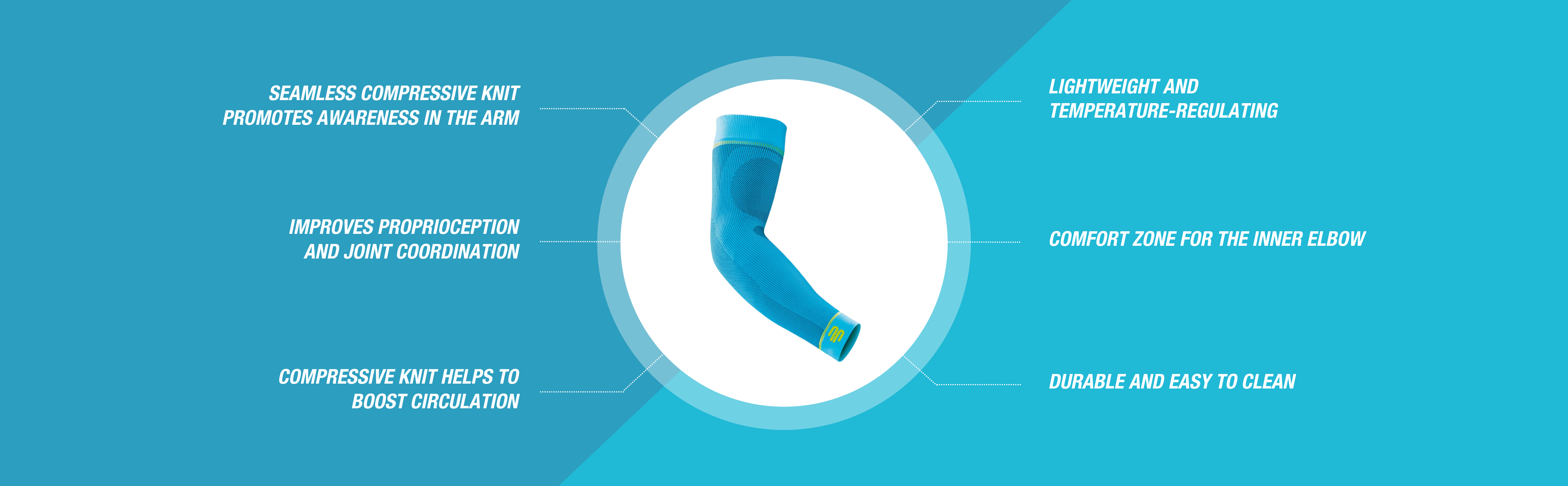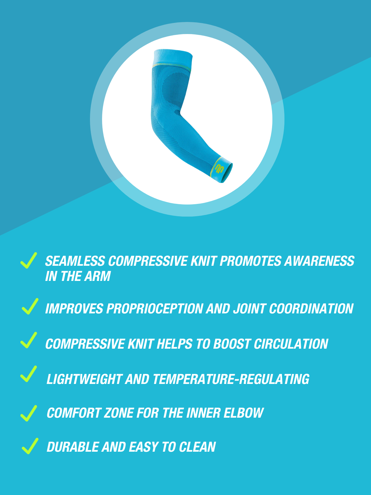 The Sports Compression Arm Sleeves activate the arm muscles with medically proven graduated compression.The muscles receive a better supply of oxygen, perform more effectively and regenerate faster. The graduated compression also reduces uncomfortable muscle vibrations in the biceps and triceps, thus preventing premature fatigue.