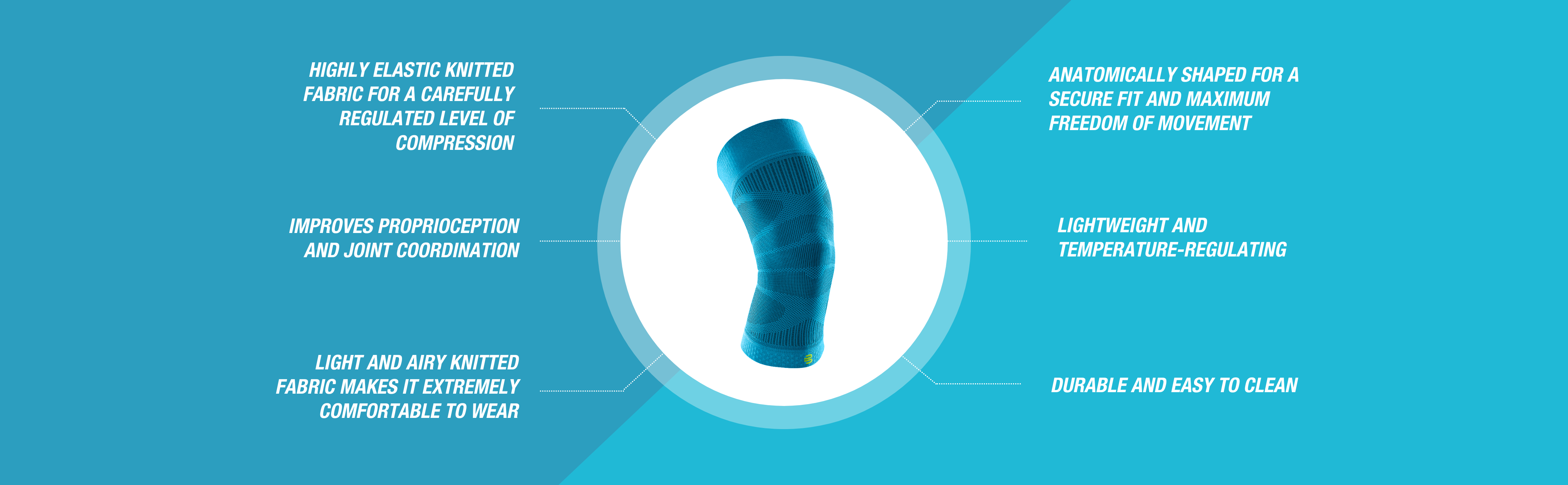 The seamless design and grip top technology guarantee a secure, no slip fit, ensuring all day wearing comfort! The knitted fabric made of high-tech microfiber forms a fine network of airy mesh: it is breathable and temperature-regulating. Comfort zones with reduced compression are incorporated into the knit to relieve sensitive areas so the knee can withstand long periods of stress better.